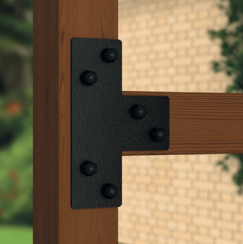 Táto profesionálne navrhnutá spojka je vyrobená z kvalitného materiálu S235 a ošetrená práškovou povrchovou úpravou v čiernej farbe, ktorá zvyšuje jej odolnosť voči poveternostným vplyvom aj mechanickému poškodeniu. Spojka je určená na montáž pomocou skrutiek pre záhradnú architektúru typu CTO s čiernym práškovým lakovaním, ktoré zabezpečia pevné a esteticky jednotné spojenie. Pri upevnení do drevených hranolov odporúčame použiť skrutky do dreva PWD v kombinácii s čiernymi záslepkami GHZ 1, ktoré prekryjú hlavy skrutiek.