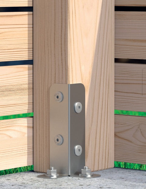 Ľahká pätka určená na spájanie drevených stĺpov a betónu. Rohová PSB konštrukcia pätky PSB umožňuje lepšiu stabilizáciu stĺpa a sa perfektne hodí na montáž pri stene.