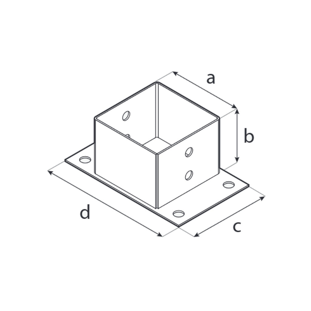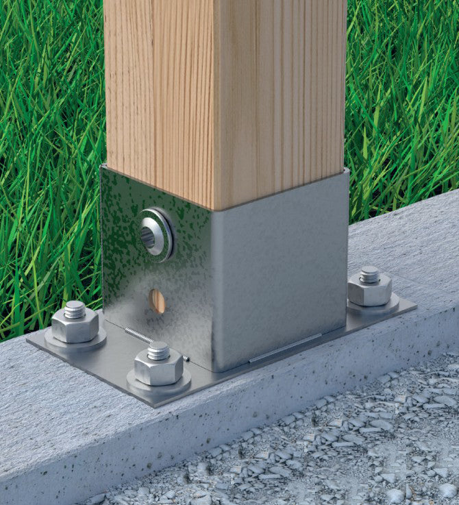 Nízka pätka stĺpika určená na montáž drevených prvkov na betóne. Zaručuje náležitú dilatáciu dreva od podkladu
