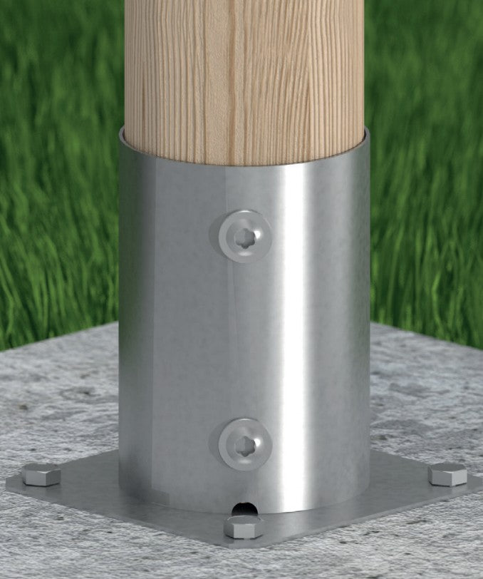 Pätka stĺpika určená na montáž drevených prvkov s okrúhlym prierezom na betóne. Zaručuje náležitú dilatáciu dreva od podkladu.