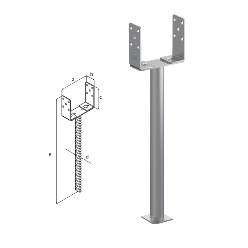 DOMAX PSRU 60-200 R500 zapustená pätka stĺpika typu U nastaviteľná je záhradný konštrukčný prvok. Trojrozmerné spojky DMX slúžia na pevné a spoľahlivé upevnenie drevených prvkov k betónovým alebo oceľovým konštrukciám, prípadne k iným nosným prvkom. Na spájanie kolmých nosných prvkov z masívneho dreva v konfigurácii vedľa seba za účelom vytvorenia spojov, pre ktoré musia byť splnené požiadavky na mechanickú pevnosť a trvanlivosť, ako je definované v základnej pracovnej požiadavke 1 nariadenia (EÚ) č. 305/2011.