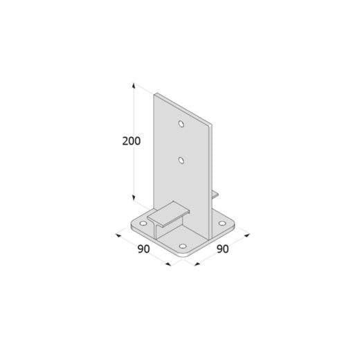 Pätka stĺpika určená na montáž v tvrdom podklade. T-profil v dolnej časti detailu je určený na opretie hranolu, vďaka tomu je konštrukcia solídna a zaručuje správnu dilatáciu stĺpu od podkladu. Môže sa natierať dekoračnými farbami, ktoré sú určené na pozinkované povrchy.