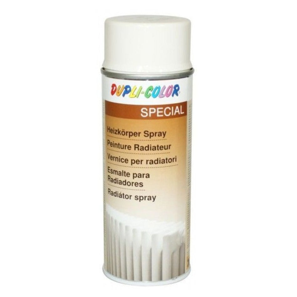 DUPLI COLOR farba na radiátory v spreji vhodná na ťažko prístupné plochy radiátorov. Je určená na renováciu a opravu náterov na radiátoroch, teplovodných nádržiach, vykurovacích telies alebo potrubí na teplú vodu. Syntetická rýchloschnúca farba je odolná voči poveternostným vplyvom.