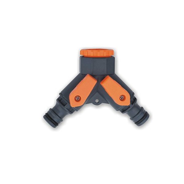 Hadicový rozdeľovač dvojcestný 3/4″ je určený na samostatné pripájanie dvoch hadíc na kohútik 3/4″. Každý výstup je vybavený nezávislým ventilom na reguláciu tlaku vody alebo uzavretie prietoku vody. Rozdeľovač je vyrobený z plastu.
