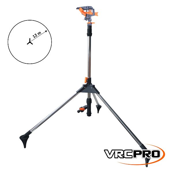 Impulzný zavlažovač na trojnožke je schopný rozstrekovať vodu až do priemeru 24 metrov a je vyrobený z plastu. Trojnožka je vyrobená z odolného hliníka a má nastaviteľnú výšku pre polievanie aj nad vysokými rastlinami, do zeme sa upevňuje vďaka hrotom v dolnej časti. Záhradný zavlažovač sa ľahko používa a môžete ním zavlažovať malé aj veľké záhrady.