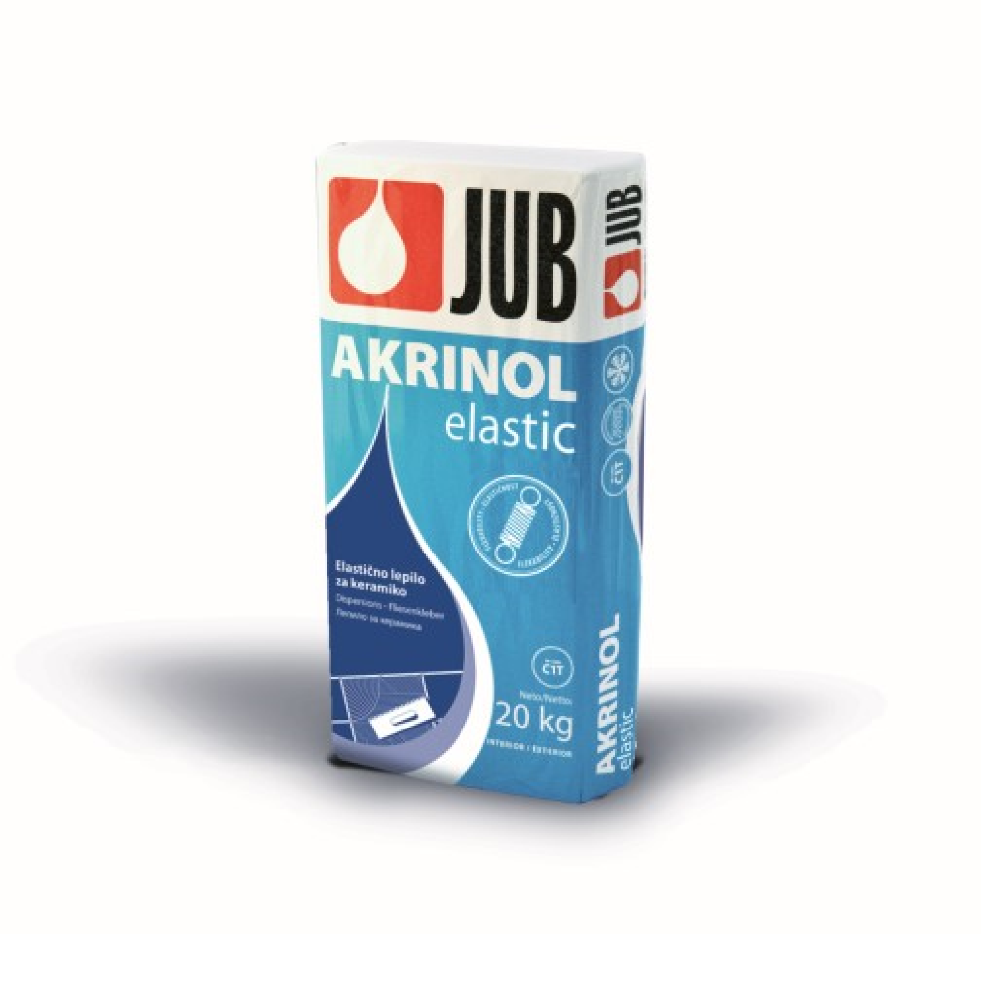 JUB AKRINOL Elastic elastické lepidlo na keramické obklady a dlažby je viacúčelové stavebné lepidlo na vnútorné a vonkajšie použitie, vyrobené na základe cementu a polymérnych spojív. Je vhodné na lepenie keramických obkladov, dlažieb, klinkeru, sklených a iných mozaík na všetky druhy stenových povrchov (jemné vápenné, vápennocementové a cementové omietky, sadrokartónové a vláknocementové dosky, pórobetón, nenasiakavé drevotriesky a pod.) a podlahové povrchy (betón, cementové potery). Používa sa na lepenie podlahovej keramiky v objektoch s podlahovým vykurovaním, na lepenie novej keramiky na staré keramické obkladačky ako aj na lepenie podlahovej keramiky v bazénoch.