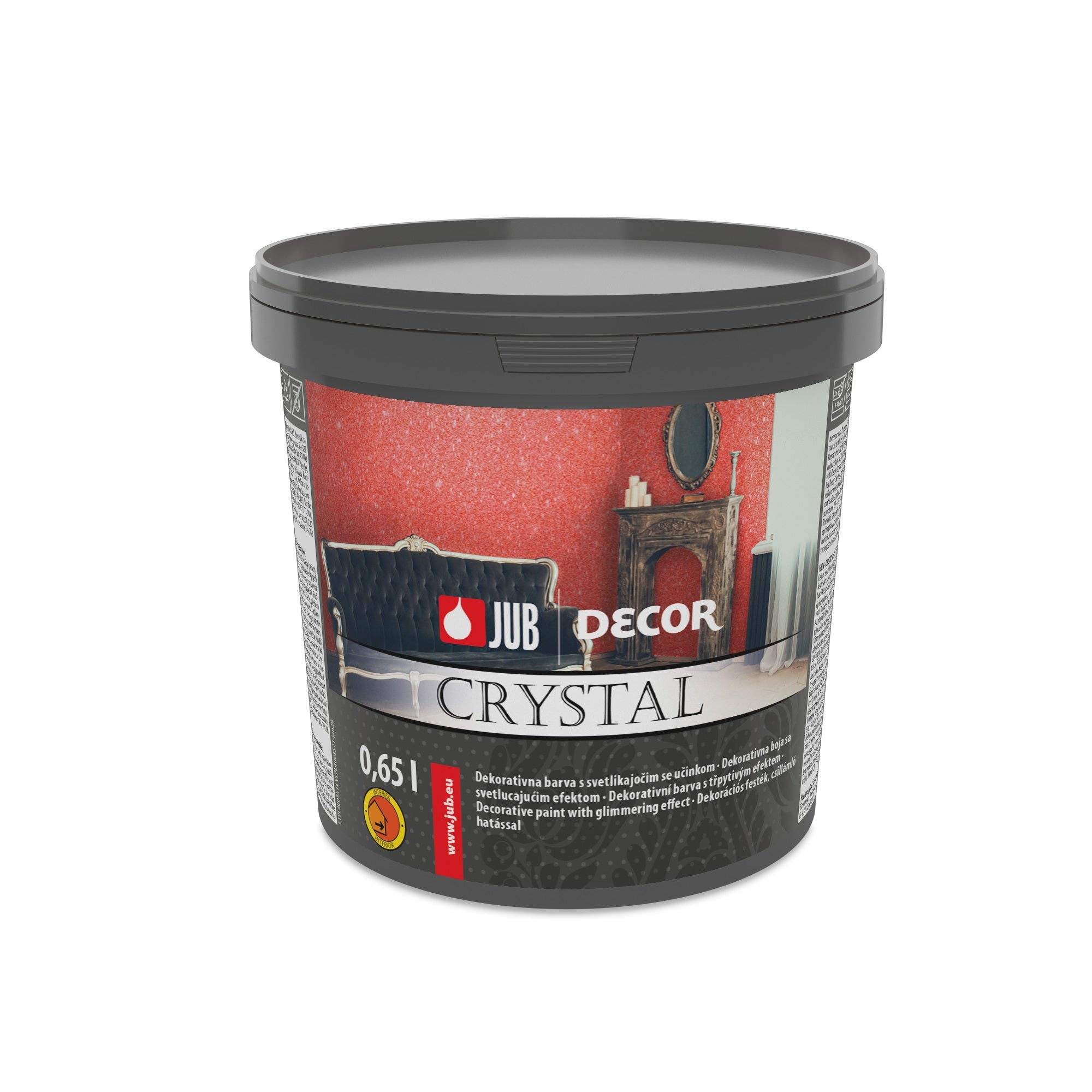 JUB DECOR Crystal dekoratívna interiérová biela farba s trblietavým efektom je prestížny dekoratívny konečný náter určený pre interiér. Vyznačuje sa mimoriadnym leskom a trblietaním kryštálov, ktoré vznikajú z nepriehľadných pigmentov, ktoré poskytujú prirodzené tmavé a svetlé odtiene.