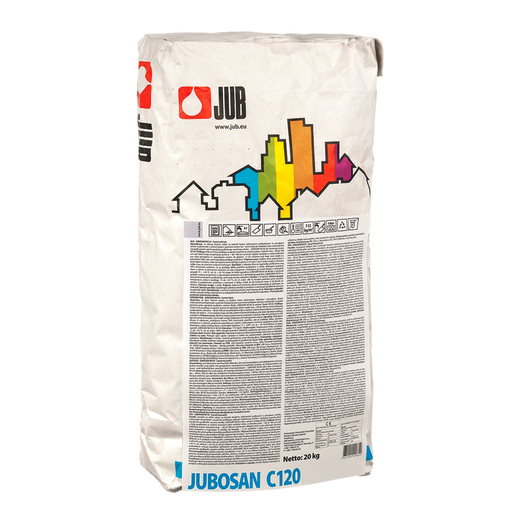 JUB JUBOSAN C120 Hrubá reprofilačná malta je priemyselne pripravená jednozložková suchá maltová zmes, vyrobená na základe hydraulických spojív a obohatená polymérmi. Malta obsahuje vlákna, ktoré zabraňujú zmrašťovaniu a zlepšujú jej fyzikálne vlastnosti.