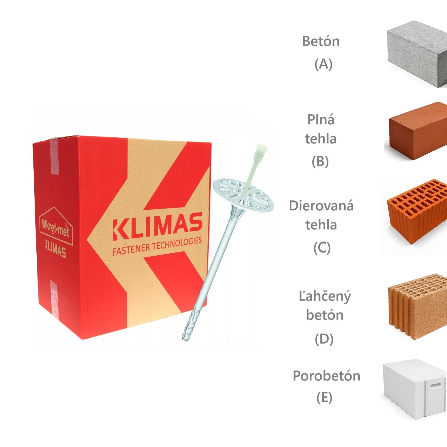 KLIMAS Wkret-met LTX-8 Tanierová hmoždinka s plastovým tŕňom a skrátenou expanznou zónou Ø8 mm je plastová univerzálna fasádna tanierová hmoždinka zatĺkacia o priemere 8 mm s predmontovaným plastovým tŕňom a skrátenou expanznou zónou. Je určená pre mechanické kotvenie tepelno izolačných fasádnych dosiek z penového expandovaného polystyrénu (EPS) a tepelno izolačných dosiek z extrudovaného polystyrénu (XPS) v rámci kontaktného zatepľovacieho systému ETICS pre rodinné domy, bytové domy a komerčné budovy, ale aj pre priemyselné stavby. Tanierová hmoždinka je vhodná pre rôzne typy podkladov, vrátane klasického a ľahkého betónu, alebo muriva z plných a dierovaných tehál a porobetónu, teda do podkladov kategórií A, B, C, D a E.