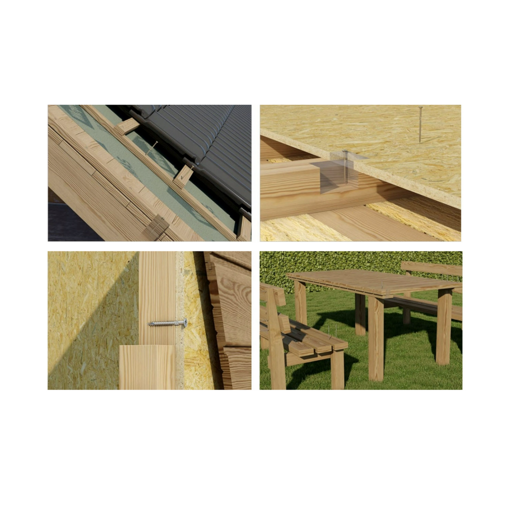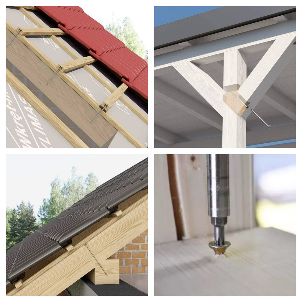 - Pred inštaláciou vyberte vhodnú dĺžku skrutiek v závislosti na hrúbke drevených prvkov a minimálnej kotvacej hĺbke