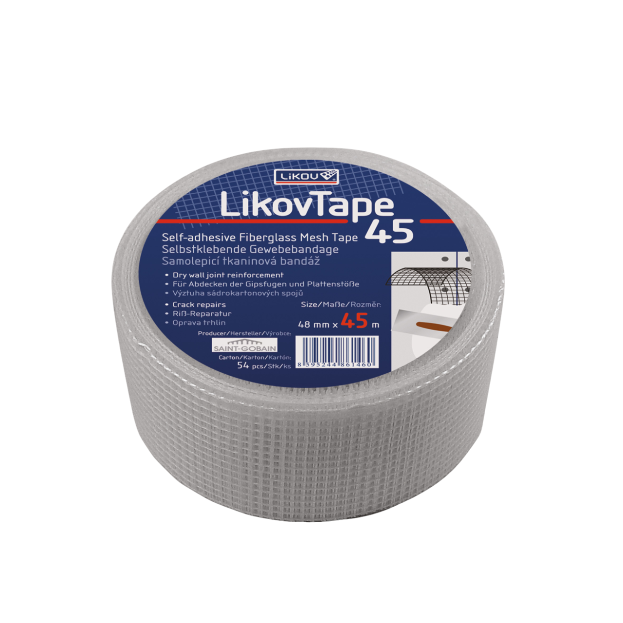 LIKOV LikovTape samolepiaca tkaninová bandáž je určená na vystuženie plochých spojov sadrokartónových dosiek. Vyrobená je zo sklovláknitej tkaniny, ktorá zabezpečuje pevnosť a odolnosť spoja. Vďaka samolepiacej schopnosti je jej aplikácia jednoduchá a rýchla. Bandáž zaručuje pevný a tenký spoj, eliminuje prach, bublinky a iné nedokonalosti na spoji dosiek, čím prispieva k dlhej životnosti konštrukcie. Bandáž má šírku 48 mm a je bielej farby.
