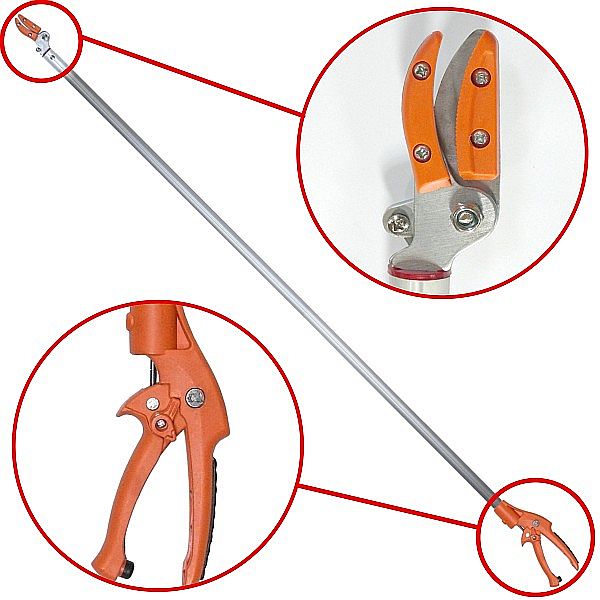 Oberač ovocia nožnicový 180cm je skvelým pomocníkom pri oberaní ovocia aj vysoko v korunách stromov. Nožnice sú vyrobené z uhlíkovej ocele s plastovou ochranou čepelí aby nedošlo k poškodeniu plodov alebo stromu. Hliníková tyč má dĺžku 180 cm a zabezpečí aby ste plody mohli pohodlne odstrihnúť aj zo zeme.