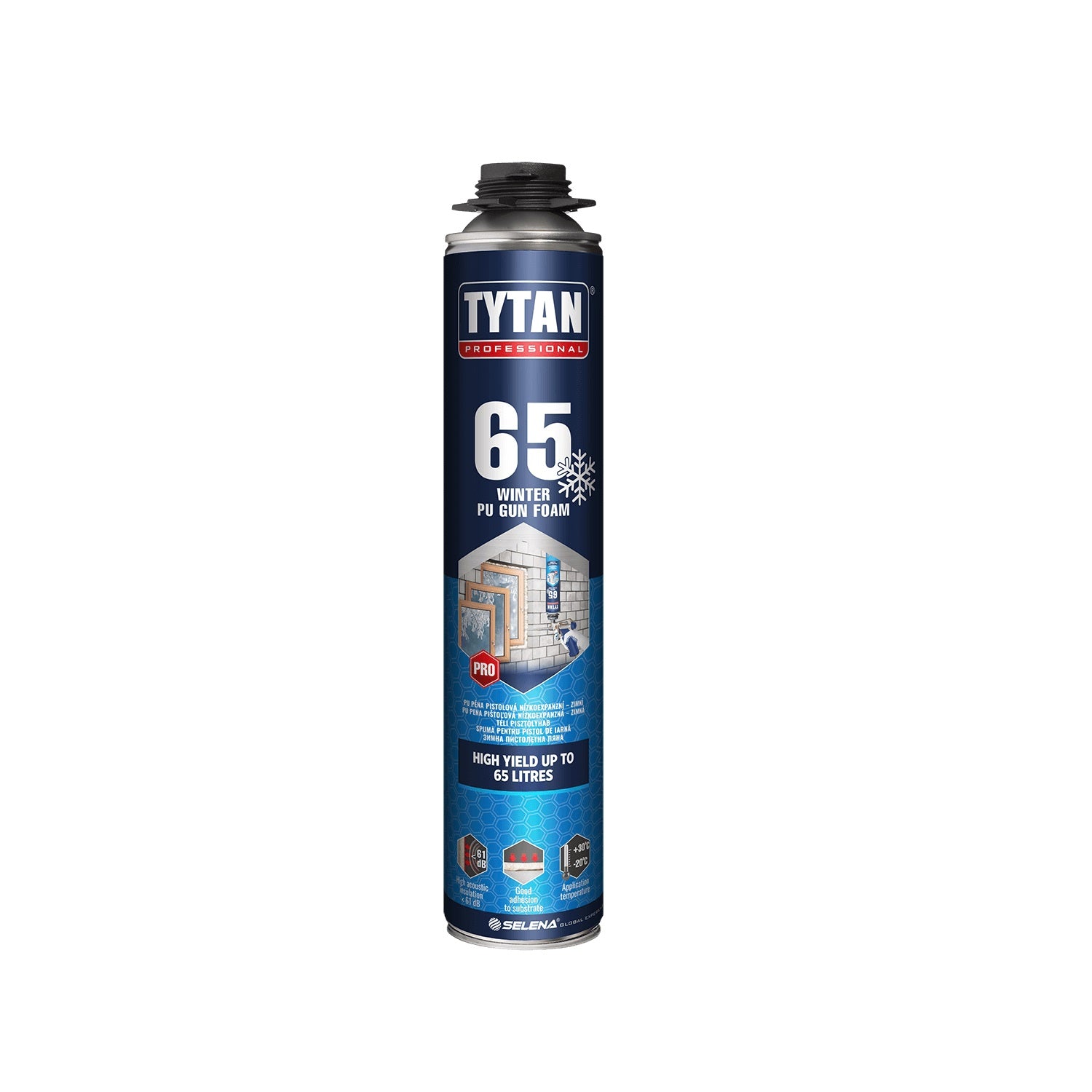 TYTAN 65 zimná montážna PUR pena pištoľová 870 ml je vysokokvalitná PUR pištoľová pena so zvýšenou výdatnosťou (65 litrov peny), nízkou post-expanziou a vynikajúcou zvukovou izoláciou. Vhodná na profesionálne použitie počas zimnej sezóny pri teplote prostredia od - 10 °C. Montážna pena nesteká z vertikálnych podkladov.